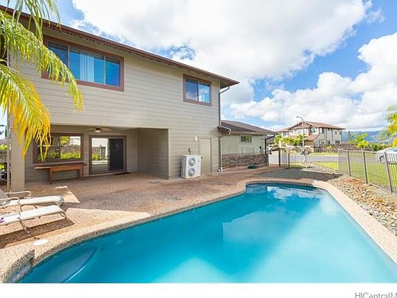 This is the best buy of the year in Mililani Mauka! Great location in a great neighborhood. Enjoy life in this super spacious Legacy 5 model with a wonderful floor plan that includes a den/office, formal living and dining rooms, a very spacious master bedroom, and large 4th bedroom. Family room adjoins a spacious kitchen with a grand island and granite counters. Beautiful in-ground pool with a large covered lanai that is perfect for entertaining. Beautiful mountain and lush forested gulch views from the front porch, swimming pool, and covered lanai area. Split ACs.
