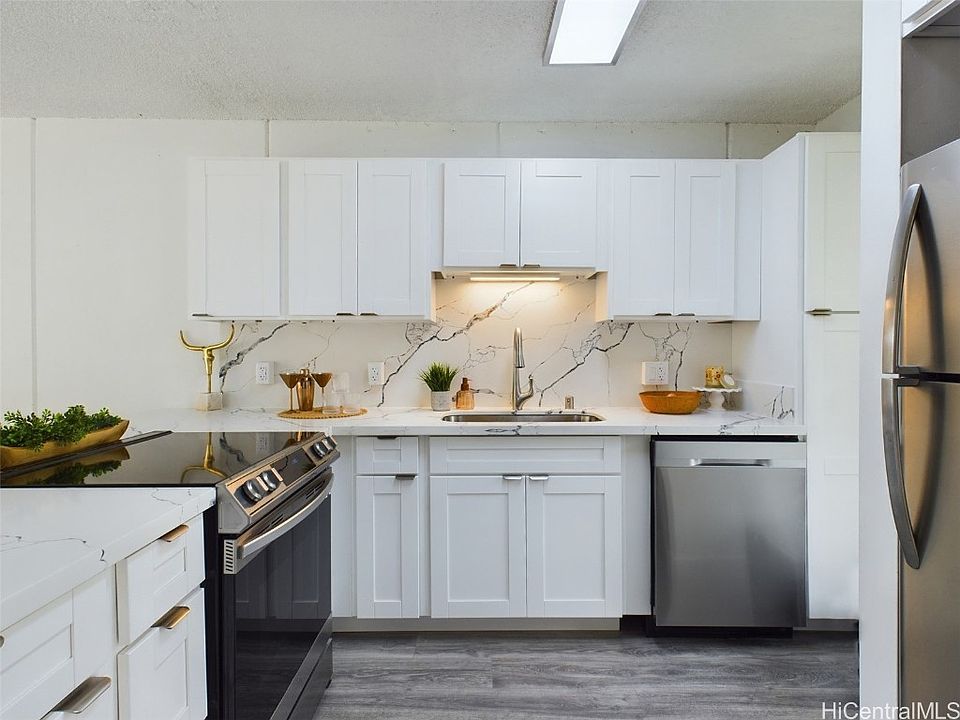 Get ready to save big while living large! Priced below $500K, this home stands as an unrivaled investment opportunity, offering an unbeatable deal that's simply too good to pass up. Situated in the serene Ridgecrest neighborhood of Mililani, this exceptional property offers unbeatable value. With 3 bedrooms, 2 full baths, and 2 parking spaces, it's the perfect example of modern comfort. And here's the icing on the cake, the monthly maintenance fees are a steal, priced under $550! Step inside to discover a collection of upgrades: vinyl floors, stunning quartz countertops, sleek kitchen cabinets, and all-new kitchen appliances that will take your cooking game to the next level. Both bathrooms have undergone a complete transformation with sleek tile floors to match the elegance of the newly renovated shower walls. Plus, enjoy the convenience of a new washer and dryer, along with LED lights throughout. Conveniently located near Schofield Barracks, this property is a dream location. And with golf courses, restaurants, and freeway access just moments away, you'll have everything you need right at your doorstep. Seize the chance to make this your new home sweet home today!