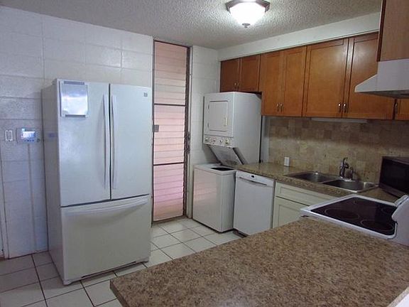 Well maintained, ground floor, 2 bedroom / 1 bath with 2 parking stalls in Valleyview Complex in Mililani. Unit comes with: * 2 window A/Cs (living room and master bedroom) * Stacked washer/dryer in unit * Refrigerator * Stove/Oven * Microwave (optional) * Dishwasher * 1 covered lanai and 1 open lanai * Alarm system maintained by Aloha Alarm System One of the parking stalls is directly off of the lanai with easy access through a key-locked sliding door. Located minutes away from Wheeler AAF and Schofield Barracks. Enjoy being close to 24 hour Fitness, Ross, The Shack, Starbucks, Jamba Juice, banks, churches and many other restaurants/eateries and grocery stores. There is also a swimming pool and a park nearby with newly updated (July 2019) playground equipment. More pics will be added. Military welcome! Sorry but no pets and no smoking allowed. Tenant responsible for Electricity, Cable and Internet. Owner will cover Water, Sewer, and Alarm System.