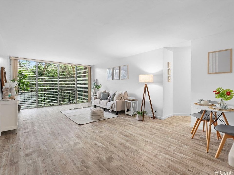 Welcome to Waikalani Woodlands, situated in serene Launani Valley of Mililani. This renovated property offers two bedrooms and one bathroom with the added luxury and convenience of TWO dedicated covered parking spaces! The assigned parking spaces are side-by-side & conveniently located on the same level as the unit, eliminating the need to climb stairs or use the elevator. As you enter the home, you'll find a bright, open kitchen seamlessly connected to the living room, which has been extended to provide a larger space for living and entertaining. The living room overlooks beautiful tall green trees, with the soothing sounds of birds chirping in the background. Floor-to-ceiling windows allow for ample natural light and a refreshing cross-breeze. Popcorn ceiling has been removed! The two bedrooms are strategically separated by a hallway, which also features versatile space perfect for a home office. Nestled in the heart of Mililani, this home combines a tranquil neighborhood setting with close proximity to essential amenities. Don't hesitate! Schedule a showing to explore this property in person!