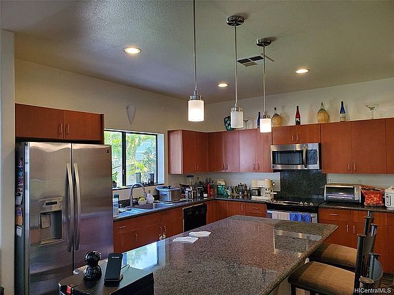 Welcome to this beautiful home in Mililani. Rarely available,this 3 bedroom 2.5 bath with granite and tile lovely open concept. Kitchen with granite counter tops, all appliances, large pantry, gorgeous slate floors, maple hard wood and carpet. Sprawling large back yard with stone wall enclosure. A lot of space for a large family. Two wall mounted flat screen televisions with surround sound. Pool table with additional refrigerator in recreation room. Family room, separate formal dining room,office,and formal living room. Security system with cameras, two car garage with storage shelving on both sides, large 8'x 10' storage shed in back yard includes barbecue and table and six chairs. Not to mention 7 recreational areas with pools, hot tubs, indoor large basketball courts, internet cafes, refreshment available, walking and hiking paths. If you want a clean safe community for you and your Ohana this home is for you. $4,950.00 Rent $4,950.00 Security Deposit Pets Welcome