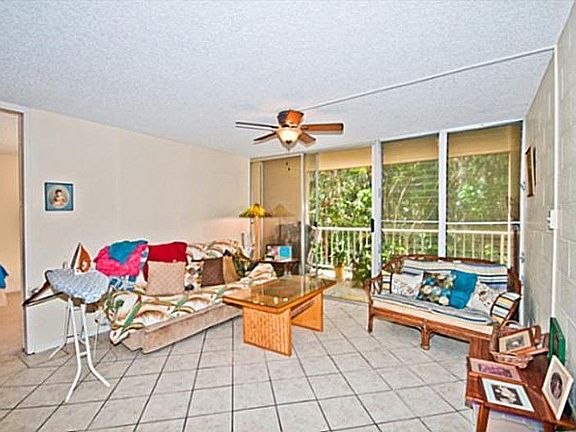 Rare opportunity to own a classic 3-bedroom/2-bath with 2 parking stalls in a gracious, quiet building. Unit features elegant tiled floors, generous rooms, & great storage. Newly painted. Lush greenery views welcome you to your lanai.