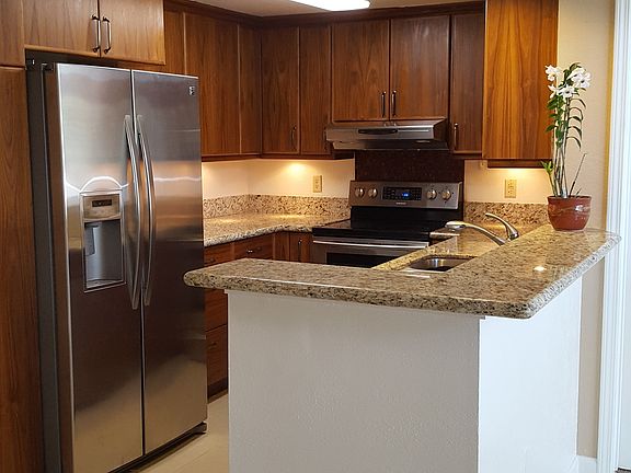 Recently renovated, new carpets, freshly painted, new ceiling fans, split a/c, resident manager, security guard, BBQ, patio/deck, pool, walking/jogging path located in the tranquil Launani Valley. Water and sewer included, 2 assigned stalls (1 covered, 1 open). No pets.