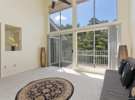Nestled in tranquil "Launani Valley" is a 1,289 sf living home, featuring a master bedroom with en suite bathroom, guest bedroom & 2nd bathroom on the ground level & a graciously large 3rd bedroom loft on the upper level. Island sunlight & lush green views are welcomed from the floor to ceiling living room windows. 2 assigned parking stalls (1covered/1 uncovered). New carpet and freshly painted throughout. Don't wait to enjoy your morning java, quiet reading & relaxation time on the open lanai. Convenient location - minutes from Wheeler, Schofield, Mililani Town Center, schools and easy access to H-2 freeway.
