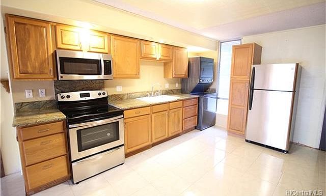 NEW LISTING: Spacious 3 bedroom, 2 full bath corner unit with 2 COVERED side-by-side parking stalls on the Launani Valley side. Brand new stainless steel appliances (refrigerator, dishwasher, & microwave range) and Frigidaire Metallic laundry center. Unit features spacious bedrooms, wood cabinets, laminate flooring, tile, and upgraded stone countertop. Located in a highly desirable neighborhood, near transit, parks, restaurants, and military base. A great opportunity for first time home buyers or investors!