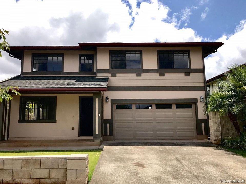 Beautiful, 4BD, 2.5BA, SF House in MILILANI MAUKA with 2-car garage and additional concrete driveway. Central A/C, ceiling fans in all four bedrooms, Master bedroom with huge walk-in closet and master bath. Upstairs family room could be an office. Luxury Vinyl tiles in Living room and dining room area. Quality carpet in upstairs bedrooms and family room. Vertical blinds throughout the home. Open kitchen with Corian Countertops and maple cabinets, electric stove/glass top oven, refrigerator with ice-maker, microwave, dishwasher, garbage disposal, and pantry. Covered front porch with security screen door. Large covered lanai that opens up to your spacious back yard. Electric Washer/Dryer. Great neighbors & great schools in the community.