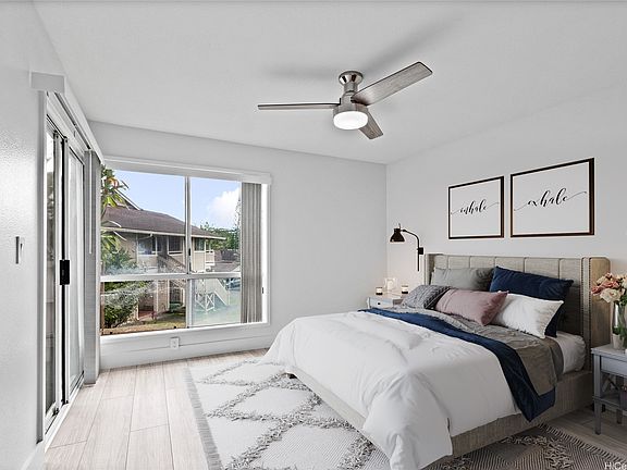 Limited time: $9,000 seller concession available for contracts accepted before October 1. New price, vacant, move-in ready! 100% insured building. Renovated interiors including new bathrooms, new flooring throughout, fresh interior paint, modern ceiling fans and light fixtures, new cabinetry, new kitchen appliances, and NO popcorn ceiling. Peaceful escape from the surrounding city life, VA approved building with pool and jacuzzi on property. Additional highlights include an in unit full size, stacked washer and dryer, new water heater, and two (2) assigned parking spaces, plus extra storage in the private fenced patio. The Launani Valley community is well-maintained and offers scenic pathways, playgrounds, tennis court, and basketball court. Conveniently located near Wheeler Airfield, Schofield Barracks, with easy access to the H-2 freeway.