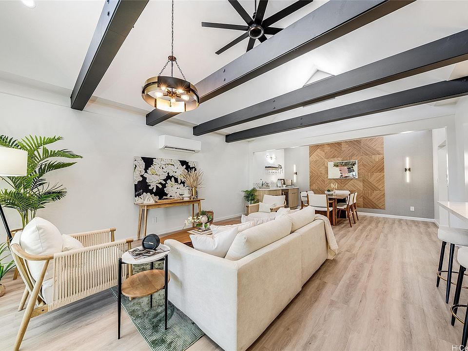 Aloha & Welcome to this stunning Boho Chic modern gem in the heart of Mililani! This fully remodeled top to bottom 4-bedroom, 2-bath home offers stylish comfort with thoughtful upgrades throughout. Enjoy a beautifully tiled spa-inspired primary bathroom with ambient LED lighting, and unwind at your own built-in wine bar. All bedrooms are generously sized with large closets, providing flexible living options. The bright, open-concept layout flows to a charming front patio and a landscaped, fenced yard—perfect for relaxing or entertaining. The large backyard is a private retreat with a mature avocado tree and herb garden. The kitchen boasts beautiful oak finish cabinets, premium KitchenAid appliances, a walk-in pantry, and direct access to the laundry room. Unique repurposed Shoji doors in the primary bedroom add a touch of island character and charm. Complete with a two-car garage and ideally located just minutes from Mililani’s top-rated schools, shopping centers, restaurants, and parks—this is the modern island living you have been dreaming of just waiting for you to call it home. Come experience its beauty today!