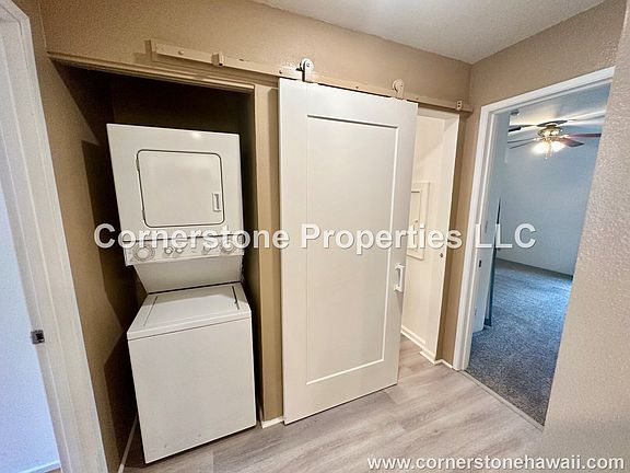 *New photos and video to be posted soon, some changes to unit include: shower was redone, new carpet in both bedrooms* Enjoy living in this partially furnished, 2 bedroom, 1 bathroom, 1 parking condo in The Gardens at Launani Valley complex in Mililani. This unit is near schools, shopping centers, parks, Schofield military base, and restaurants. PROPERTY DETAILS: - Unit Type: Condo/townhouse, ground floor - Approx. Square Footage: 800 - Year Built: 1993 - Bedrooms: 2 - Bathrooms: 1 - Parking: 1 Covered Stall UNIT FEATURES: - Laundry Center - Dishwasher - Disposal - Refrigerator with Ice Maker - Electric Stove/Oven - Microwave Range Hood - 3 Ceiling Fans in Living Room and Bedrooms - Open Patio - Storage Closet - Window Coverings: Curtains - Flooring: Carpet and Laminate AMENITIES: - Pool & Hot Tub - Recreation Center - Playground - Park - Carwash Area - BBQ Area - Tennis/Basketball Court - Resident Manager UTILITIES: - Included: Water/Sewer - Tenant Responsibility: electricity, cable, phone, internet, pest, and gas (if applicable) LEASE TERMS: - No smoking - Sorry, No pets. - Available Date: 9/30/2025 - Lease Length: 1 year - Professional cleaning required upon move out by an approved vendor of Cornerstone Properties. - Renter's insurance required: with $300,000 liability coverage and Cornerstone Properties listed as an additional interest. - All adults 18 years old and older must apply. - Application fee: $35 (Non-refundable) PROPERTY CODE: 1293TAU Cornerstone Properties, LLC: RB-20789 *DISCLAIMER: This property is currently tenant occupied therefore in-person showings are unavailable at this time. If you submit a rental application, you do so with the understanding that the application fee is non-refundable, and it will be processed as a Sight Unseen application. Cornerstone Properties is not responsible for any inaccuracie