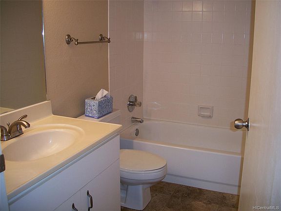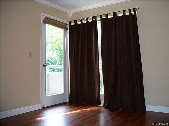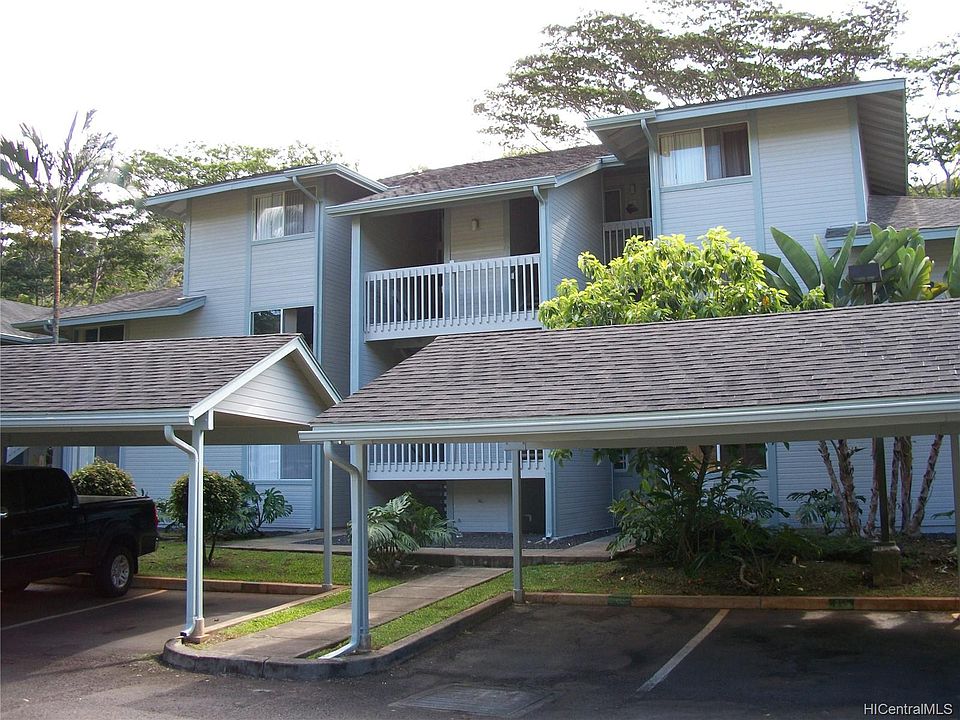 TWO bedrooms, TWO full baths and TWO parking! Desirable 'Gardens' condo in lush green Launani Valley. Spacious perimeter unit is cool and clean. Lovely laminate floors. Brand new area rugs. Covered lanai with access from living room and Mstr bedroom. Incl washer, dryer, stove, refrigerator, dishwasher, disposal, ceiling fans, storage closet on lanai. Complex has pool, spa, BBQs, and kids' play area. Outside walking paths, tennis, basketball, Leilehua Golf Course nearby. Very convenient to Wheeler, Mililani Tech Park, and access to freeway and Kam Highway. Short drive to Mililani's and Waikele shopping and sports parks. Available now. Min 6 mo lease, no smoking, please. Small dog possible.