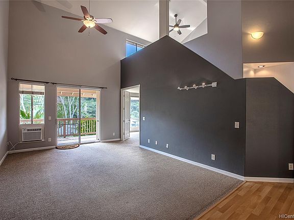 Come see this 2 bedroom, 2 bathroom townhouse with large loft located in Launani Valley area of Mililani. The loft can easily be converted into a 3rd bedroom. Close to Schofield Barracks, Wheeler Army Airfield, and a short drive to shopping centers as well as restaurants. Featuring an open floor plan, carpeting throughout, 2 assigned parking stalls, ceiling fans, large lanai, and AC in the living room. Comes with a refrigerator, oven/range, microwave, dishwasher, garbage disposal, washer, and dryer. There is a community pool, park, BBQ, and basket ball court. Rent includes water, sewer, and trash. Limit 4 people. Owner willing to consider 1 small pet up to 25lbs.