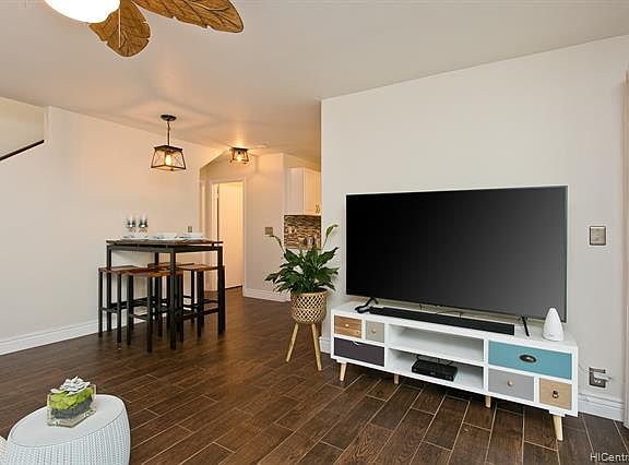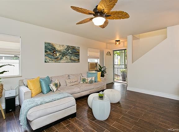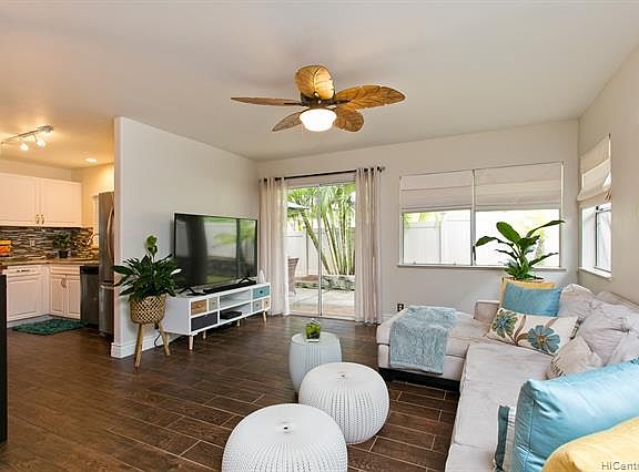 This charming 3-bedroom & 2.5-bath home has a preferred cul-de-sac location & conveniently adjacent to guest parking. Desirable floorplan features an open kitchen boasting stainless steel appliances, granite counters & chic backsplash. All bedrooms are located on the second floor for add'l privacy. The bright master suite has a vaulted ceiling, huge walk-in closet & en suite bath. Upgraded flooring include porcelain planks & luxury vinyl throughout. Contemporary ceiling fans & window AC unit provide cooling options. Enjoy outdoor dining & entertaining on your private & fenced backyard. Woodcreek is situated in the tranquil Launani Valley neighborhood of Mililani with lush tropical surroundings & amenities that include walking paths, playgrounds, basketball/tennis courts & guest parking. Easy access to H2 Freeway for a quick commute to town, Wheeler Army Air Field, Schofield Barracks or North Shore. Mililani Town, restaurants, shopping, schools, bus lines & more are just minutes away.
