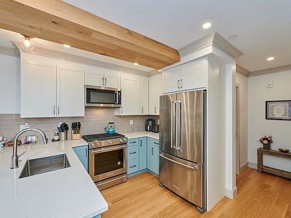 - Features: Flooring - Wood, Countertops - Stone/Granite/Solid, Kitchen Island, Cabinets - Upgraded, Recessed Lighting, Stainless Steel Appliances, Storage, Gas Stove, Crown Molding