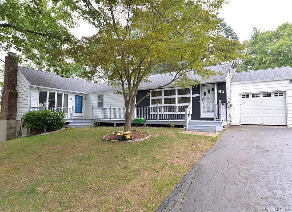 Fantastic opportunity for a Multi-family home conveniently located in Milford. Perfect scenario for a family seeking a in-law or additional living space for a family member. Looking for an investment - ideal for that too! Full walk out basement for additional living space and 2 washer and dryer hookups. The roof is just 1 year young! #95 - Three bedrooms on one side with Living room, eat-in kitchen and full bath, central air. #97 - One bedroom, living room ,large dine-in kitchen and newer full bath with wall unit A/C on other side. Gas and oil heat. Property has septic, sewer connection available in the street. Hardwood floors, trex deck, full attic , pool and garage. One level living for both units. Location could not be any better located at the end of the cul-de-sac with easy access to I95, Merritt Parkway and minutes from Metro North. A commuters dream!