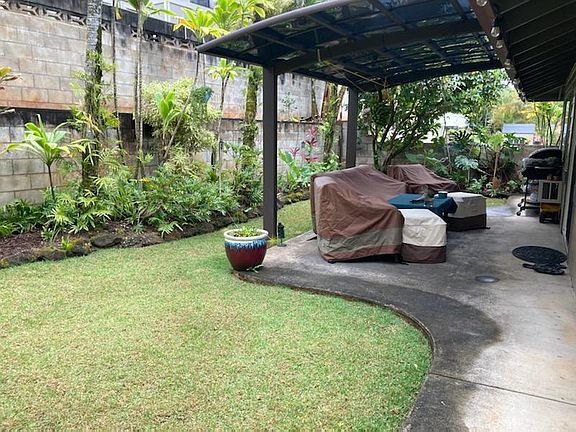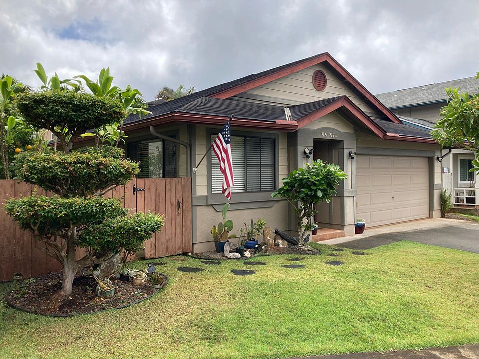 Charming 3 bed/2 bath home in highly desired Mililani Mauka neighborhood. Close to shopping & neighborhood recreation centers, as well as walking distance to elementary & middle schools. Home has newer appliances, solar water heater, ceiling fans in each room, a/c unit in one bedroom, as well as in living room. Fenced in yard with manicured garden setting and amazing outdoor covered patio/lanai area that's perfect for enjoying barbecues and the cool evening breezes of Mililani Mauka. Yard is equipped with timed ground sprinkler system, garden lights, fruit trees, herbs, and desirable tropical plants and flowers. Home is situated in a safe & quiet neighborhood culdesac with 2 car enclosed garage parking. Two additional cars can also fit in the driveway. Don't miss this opportunity to live in one of Oahu's most favored towns just minutes away from everything the island has to offer. 1 year lease with deposit and the possibility of extending at the end of 1 year. House includes AHS home warranty that covers all appliances and most features of the house. Renter is responsible for $75 service call which is potentially reimbursable. Renter is also responsible for regular yard maintenance. All utilities to be paid for by renter (solar water heater included). Smoking and pets are prohibited in the house. Violations of HOA rules, lease terms, or complaints may be terms for immediate lease termination and loss of deposit.