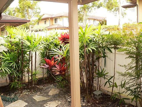 This 2 bedroom, 2 bath townhouse at Nohona in Mililani Mauka is in impeccable condition. Wood laminate floors throughout. Plantation shutters. A/C in each room. New dishwasher, microwave and garbage disposal. Closet system in walk-in master closet. 1 car garage with tandem driveway stall. Washer & Dryer in unit. Small private, landscaped yard. Great location. Close to shopping, recreation, medical services and access to freeway. Absolutely NO Pets. Absolutely NO Smoking. Renters Insurance Required. Application fee.