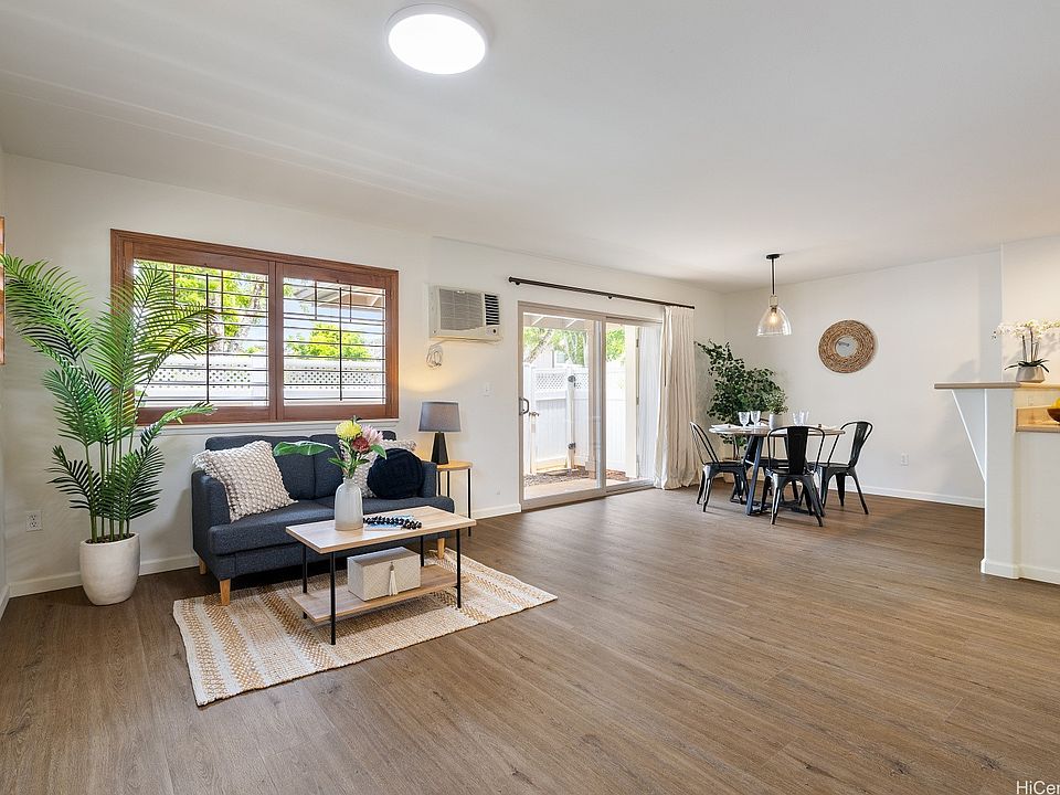 Welcome home to a fresh & very inviting space. New luxury vinyl plank floors throughout. Plantation shutters & air conditioning in each room. The kitchen is large & efficient. It flows nicely to the living room & dining area. Prefer outdoor dining? The private yard features a covered lanai & a vinyl fence. This Nohona II at Mililani Mauka townhome is a great alternative to a single-family home! Lots of natural light & cool breezes year-round. It is an end unit with a two-car garage & driveway long enough for 2 more cars to park. There is even a guest stall next to this property & a few more around the corner! This community is a well maintained & pleasantly groomed community. It is very close to the District Park, Mililani Mauka Elementary, great shopping, dining & other services. Mililani Town Association amenities include several recreational facilities, pools, tennis courts, classes & programs. Nohona II maintenance fees include water, sewer, common area maintenance & master insurance. There is a small monthly special assessment for 2025 for increases in association insurance premium, it will be paid in full by the seller upon the close of sale.