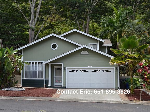 IMMACULATE AND TRANQUIL! *4 Split A/Cs *2 Car Garage *Lush Landscaping *Safe, *Upscale Neighborhood *Built in 2001. This home is the largest model in WoodCreek and has a private streamside backyard. Expansive open lanai, with terraced yard to enjoy the mountain and stream. Spacious kitchen with family dining, master bedroom and a huge walk-in closet on the main floor. Cathedral ceiling in living room. 3 bedrooms and a full bath upstairs plus extra walk-in storage attic. A/C (in one bedroom upstairs, living room, dining room and master bedroom) ceiling fans throughout. Carpet and tile flooring. Location in Mililani's lovely Launani Valley is prime, easy access to H2 and a quick drive to Wheeler/Schofield (5-10 min.), Hickam, Pearl Harbor and Camp Smith! Just a short drive to the fabulous North Shore. Large driveway easily supports two full-size vehicles. Convenient shopping, 5 minutes to Wal-Mart, movie theater, and lots of outstanding restaurants. Applicants must have excellent credit. No smoking. $25 Credit Check/$10 App Fee per each adult over 18. Standard one month security deposit (equivalent to rent). Unit available for move-in as early as 6/14/2021. Text or call for an application and appointment to view. Serious/qualified renters ONLY. No smoking. Pets allowed with prior approval. Absolutely no high risk breeds limit two pets. Liability insurance may be required based on breed of pet. $25 Credit Check/$10 App Fee per each adult over 18. One month security deposit (equivalent to rent) and a credit check. Garbage pickup included, renter pays all other utilities.