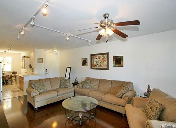 First Open House Sunday 6/11 from 2-5pm. Beautiful 2 bedroom 2 bathroom ground floor unit in Terraces at Launani Valley. Pride of ownership shows throughout. Tons of new appliances including refrigerator,range with built in micro hood and microwave, and large stackable washer and dryer. Other great features include: Laminate flooring, Split AC installed 18 months, Plantation Shutters,gorgeous yard with ceramic tile deck and astro turf grass area surrounded by River Rock. Nice complex pool to enjoy the peaceful Launani Valley surroundings. View Full HD virtual tour: https://youtu.be/dn8ChqiE3Q8