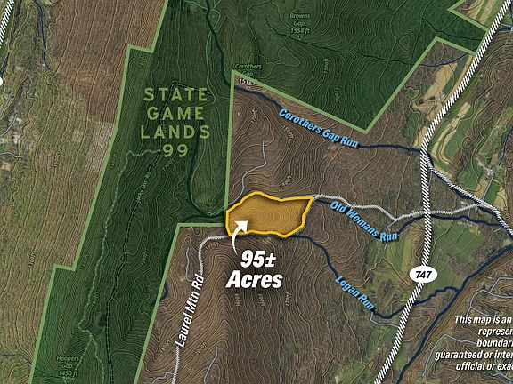 95± INCREDIBLE ACRES BORDERING STATE GAME LANDS 99! GREAT HUNTING w/ immediate hunting rights! The property has approx. 500 feet of frontage with the State Game Lands! Old Womans Run flows through the property. Wooded property with tons of wildlife including deer, turkey, and bear! Just minutes from Three Springs, Orbisonia, and 522! Over 5,000 feet of road frontage! Come and make it your own private oasis! Taxes are estimated to be approx. $350. Property is in clean and green. Subject to subdivision approval. This property will be offered at auction on Tuesday November 19, 2024 @ 3:00pm. The List price in no way represents a minimum, starting, or acceptable bid.