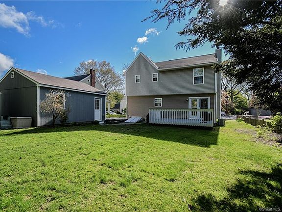 Located in Stratford's desirable historic district, this charming colonial sits near the end of a quiet cul-de-sac. A short walk to MetroNorth, library, youth recreational center, restaurants, marinas and churches. As you enter to the left is the living room complimented by a log burning fireplace & open area leading to the eat-in kitchen & large rear deck. The kitchen has an elegant back-splash which compliments the granite counters & stainless-steel appliances. Off the kitchen is an updated half bath & laundry area. Continuing on the first floor is a large dining room which is flooded with sunlight. The first level has beautiful hardwood flooring. The second floor boasts a vaulted ceiling master bedroom, with new ensuite, a walk-in closet & an additional large closet. There are 2 more beautiful bedrooms flooded with daylight & updated full bathroom. The partially finished lower level (260 s.f. can be used as a den, office or rec room. This house is heated by gas & has a new central air conditioning system. There is a 2-car detached garage with loft storage space. Another bonus is the extra-large storage shed. This home is a perfect place for outdoor living with its flat, private rear yard with enough space & sun for a pool. Close to Long Island Sound and the beautiful Housatonic River. With summer around the corner, enjoy the Stratford Town Beaches or relax on your front porch and read a book or have a cup of tea This home is priced to sell.