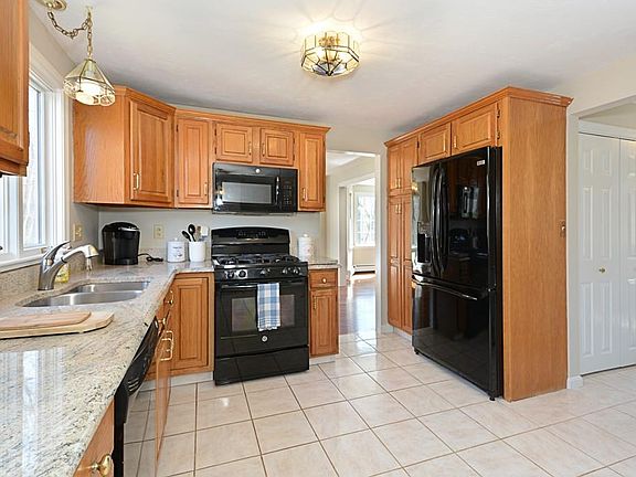 Great opportunity to own a beautiful Colonial with over-sized 2 car garage situated on over 5 acres of land. 3 bedrooms and 2 baths upstairs, first floor hosts a kitchen with breakfast table and walk out slider to your deck with views of the pond, dinning room, living room, and family room with fireplace. Freshly painted interior. Partially finished walk out basement with full bath. Sit by your fire pit overlooking the pond and enjoying the gentle sound of the nearby creek. Paddle out in your kayak, drop a line for native fish, or just enjoy the peace and tranquility this property has to offer. Privacy and wildlife abound here, this is a nature lover's delight. Short drive to either Pleasure Pointe Park & Beach (Holliston Residents Only) or Stoddard Park & Beach (Lake Winthrop). All Appliances included with the house. Additional items include a second refrigerator located in the basement game room, a built in safe, and a Coleman gas generator.