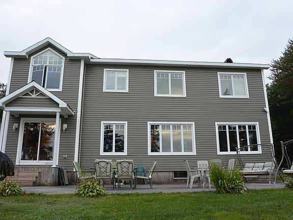 Year round well built full 2 story waterfront home on 2.49 acres on beautiful Moosehead Lake, Maine with 305 feet of waterfront. Has a finished basement with additional rec room, bedrooms and bathroom. Original A frame camp has living area and a loft bedroom with 100A electric and wood heat. Total of 3.5 baths and 5 bedrooms. 44 X 20 patio with outdoor fireplace. Large rolling front and back lawn right to lake and road. Original A Frame camp has been remodeled with knotty pine, deck and a loft bedroom with electricity and a separate driveway. 32 Foot dock, gently sloping beach and boat launch in a private cove. Outdoor fireplace and a nice easy to access pebble beach. Two car garage with upstairs unfinished living area facing water. Generator hookup and 200A electric. 8x8 Boat house near water. Direct access to ITS snowmobile & ATV trails. Security and remote monitoring systems in all buildings.