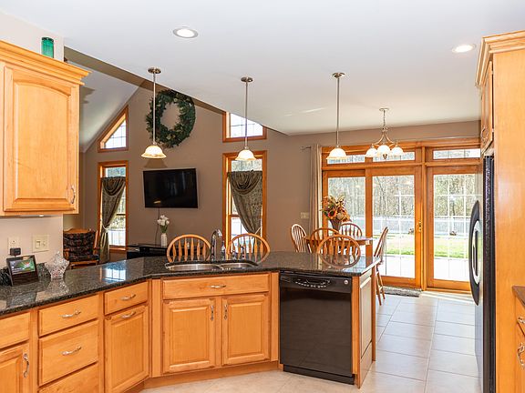 Welcome to your dream ranch-style home. This spacious 4-bedroom, 2.5-bath is a perfect blend of comfort and style. The heart of the home, the kitchen, boasts granite counters, an abundance of storage space, and a cozy eat-in area which leads out to the backyard. The open-concept step down living room is bathed in natural light, thanks to its vaulted ceilings and grand foyer with beautiful chandelier, creating a warm and inviting atmosphere for gatherings with friends and family. The primary bedroom is a sanctuary with a large closet, and ensuite bathroom featuring a jetted soaking tub and separate shower. The three additional well-proportioned bedrooms come complete with large closets, ensuring ample space for everyone. For added comfort, the house features radiant in-floor heating, central vac, and over 2.5 acres of bliss. Step outside the sliding glass doors from the kitchen onto the raised trek deck where you can unwind and overlook the fenced in backyard. Descend down two steps, and you'll reach the inviting 20' x 40' in-ground pool with a diving board. A large unfinished basement offers the potential for additional living space, or plenty of storage along with the attached oversized two car garage. All of this, just minutes away from the charming City and Town of Plattsburgh. Don't miss the chance to call this paradise your home!
