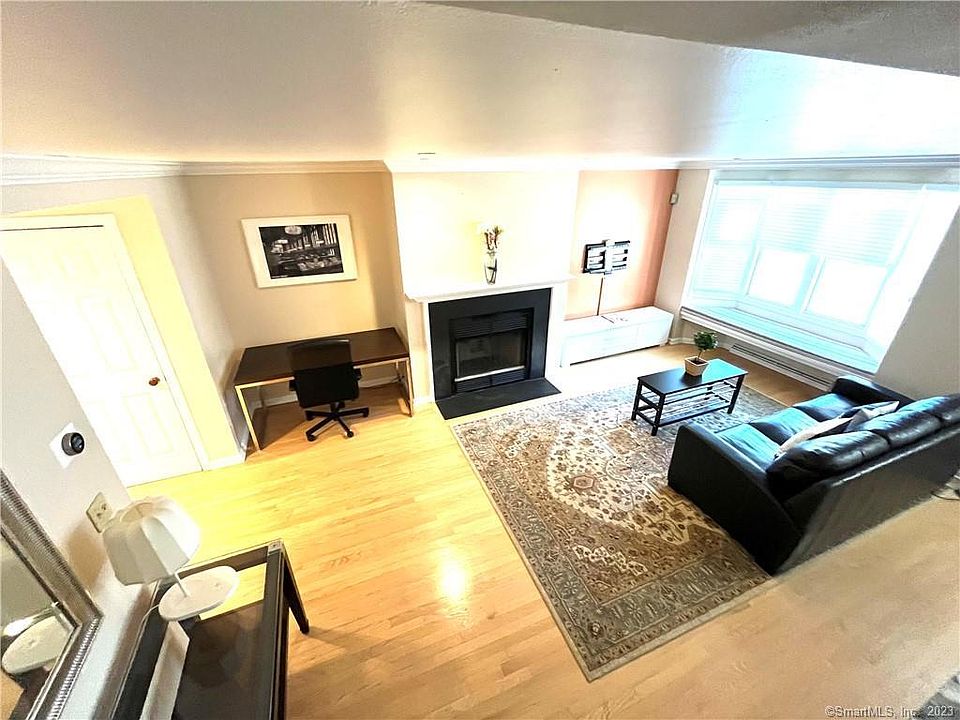 Live a few blocks to downtown New Haven but in a very quiet gated community with a stunning landscaped and private large courtyard. This sophisticated townhouse features 2 bedrooms each with an en-suite bathroom, a powder room on the first floor, a formal living room with a fireplace and a built in window seat, recessed lighting, and a formal oversized dining room. The condo boasts central air, gleaming hardwood floors throughout, a washer and dryer on the second level, and the kitchen boasts a gas stove, built in microwave, dishwasher, stainless steel appliances and many cabinets for storage. There is underground parking below the condo for one car, 24 hour concierge and security, and the complex underwent a renovation in 2015 and all windows and roofs were replaced. This is a very special offering in New Haven, an urban oasis and a serene place to call home. Please inquire today to schedule a showing. Two cats are allowed but unfortunately no dogs. The furniture is included in the sale but if not desired, it will be removed by closing.