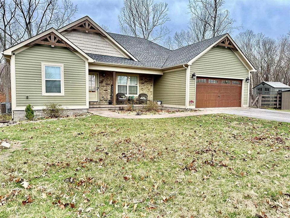 Check out this beauty. Nestled just over the Allen / Warren line in Scottsville, KY, you'll love the country setting. This nearly new home is in the sought after Alvaton area and is just 10 minutes to the parkway and Bowling Green, offering ultra convenient access to tons of amenities. The interior offers up a beautiful vaulted living room, brand new LVP flooring and an open split bedroom floor plan. The kitchen has custom cabinetry, granite countertops and the appliances stay. You'll find ample storage with walk in closets and a utility room off the hallway/entrance from the garage. Outside, you'll love the stained and stamped concrete porches and sidewalk, super nice lighted fire pit plus the fenced in back yard offering a split fence to keep your pets separate in the yard while remaining fenced. Don't let this one slip away, Call Today!