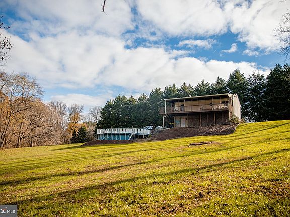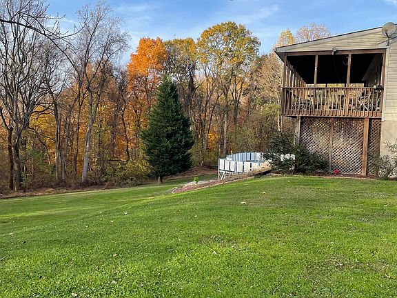 Featuring a long, private, tree lined driveway and 2 full private acres backing to woods with hiking/biking trails. Enjoy the views of nature and wildlife on the HUGE covered back deck that stretches the length of the house and in the warmer months, enjoy the above ground pool with new liner! Inside you will find vaulted ceilings in the living room and master, crown molding, ceiling fans, and eat in kitchen with lots of space for dining set. Appliances under two years old and convey. Perfect layout with two beds, full bath upstairs and two beds, full bath downstairs. Laundry room, large utility room, walk-out basement to rear yard. This a beautiful, well kept home in a great neighborhood! One year home warranty included with purchase. **Price has been adjusted due to feedback on showings...The lot is amazing but the house itself is a little small. There's a great opportunity here for someone with the ability to build an addition to meet their needs. There's a perfect space to the left of the house for an addition. If you are looking for privacy, this is the home for you!**