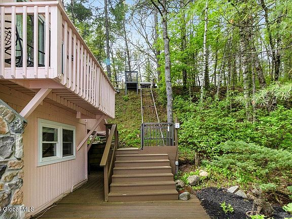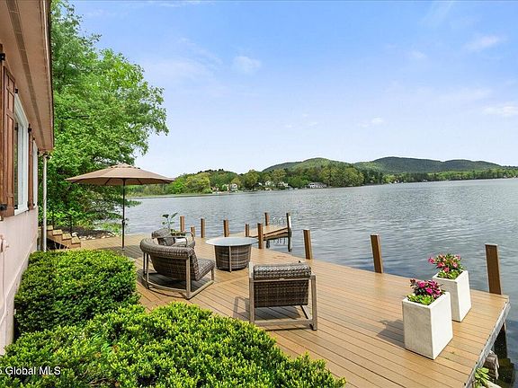 Must see charming year-round Adirondack lake front cottage offering spectacular views of Glen Lake, the Adirondack foothills & Green Mountains of Vermont. The cottage has 2 bedrooms, 1 bath w/ flex space. Updates include trex decking over the water's edge, exterior paint, interior paint, new light fixtures, new carpet (2nd floor), custom Hunter Douglas blinds, updated bathroom, bank of built-ins for added storage space, new water purification system. Also wired for generator back up. Property includes a hillside custom transportation system (tram) supplementing exterior stairs. Do not miss your opportunity to own this pristine lake front cottage w/ boat slip. Property is abundant w/ wildlife. Close proximity to county bike path to Lake George, the Glens Falls Country Club, and ski resorts