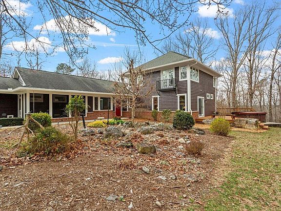 Perched atop Terrell's Mountain at one of Chatham County's highest elevations, a pristine 2-home retreat awaits you. With Frank Lloyd Wright inspired architecture, this custom-built cedar sided home was designed with close attention to every detail, and an adjacent guest house is the ideal complement. A total of 5 bedrooms, 3.5 baths, plus workshop (w/ own bath), barn and more! Surrounded by 10 wooded acres, this hilltop enclave enjoys privacy and peaceful sunsets with a location just a 10 minute drive to Chapel Hill. 95 Blueberry Ridge blends seamlessly with its natural surroundings. Oversized windows capture views of the hardwood trees from every room. The large screen porch features a vaulted pine ceiling and tile floor, overlooking the nearby garden. A wrap-around deck and stone patio provide relaxing spaces to enjoy wildlife, a glass of wine or a good book. A rock-outcropping garden and metal sculptures greet you as you enter the main house. Inside, the family room is a show piece of this stunning home, with its barrel ceiling of tongue-and-groove pine. Natural wood trim work, craftsman style, and gleaming hardwood floors reflect the natural light from all angles. Settle-in for an autumn evening by the stone fireplace with its hand-hewn barn beam mantle, flanked by built-in storage benches. You will long to spend time here. A large kitchen greets visitors upon entering, with custom-built cherry cabinetry including glass doors, a granite-topped breakfast island, and stainless steel appliances. The nearby sunroom is ideal for your breakfast coffee or for starting seedlings for future planting in the gardens. A mudroom, adjacent to the 2-car garage, has a convenient drop zone for shoes and coats, and a small sink for washing-up on your way in from the garden. A main-floor primary suite features a large walk-in closet, ensuite bath with large walk-in shower and dual vanities, also of cherry wood. A sliding door to the deck and hot tub from this suite draws you out to nature. The nearby office is a terrific workspace with a custom, built-in desk and cabinetry. Upstairs, you will find 2 more bedrooms, a guest bathroom, and a bonus room with built-in homework desk and TV nook. A wrought iron Juliet balcony overlooks the rock outcropping garden, stone walls, and surrounding trees. The 2-bedroom guest house is fully furnished and offers endless possibilities for multigenerational living, guest quarters, a care provider, or short or long-term rental. Below the guesthouse you will find an amazing workshop - ideal for an artist's studio, woodworking shop, or even a car enthusiast's garage. The shop even offers a heated office with full bath. Just down the back driveway you will find a charming barn - great for storing a boat, tractor, or whatever! And for every green-thumbed gardener, this property includes a backyard potting shed and covered wood storage area. Come visit and be captivated by all that this amazing property has to offer. Welcome home to 95 Blueberry Ridge.