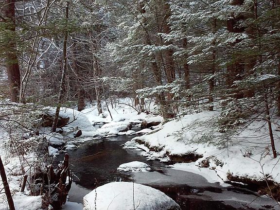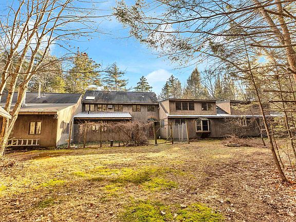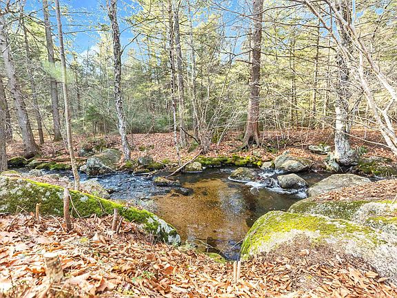 A long, privacy ensuring driveway leads to the brookside site of this rustic contemporary, designed to blend with its sylvan surroundings. The privacy is further enhanced by abutting acreage owned by the Harris Center for Conservation Education, part of a 25,000 acre "Super Sanctuary", which will always remain protected land. The main house features a Great Room with vaulted ceiling, woodstove, living and dining areas open to the kitchen off of a South facing deck . Adjacent is the pantry/laundry and utility area. There is a first floor bedroom, shower bath and office/study used as a primary suite. The living areas have views of the babbling brook. Also on the first floor are the formal dining room, living room/music room with library alcove, TV den and entrance off the mudroom that connects to one of the two car attached garages. On the second floor, the main house has 3 bedrooms, hall bath and loft overlooking the Great Room In the addition is the apartment with open concept living/dining/kitchen and bedroom with shower bath. Below are two heated rooms overlooking a grape arbor fenced area for gardens and pets, and a third unheated space, formerly a dog kennel, ideal for a workshop or studio. Second attached two car garage. Whole house backup generator. Comcast internet installed in the main house. Additional outbuildings include a double carport, long woodshed, storage shed with woodsplitter, chipper and utility trailer. A-one-of-a-kind property and location.