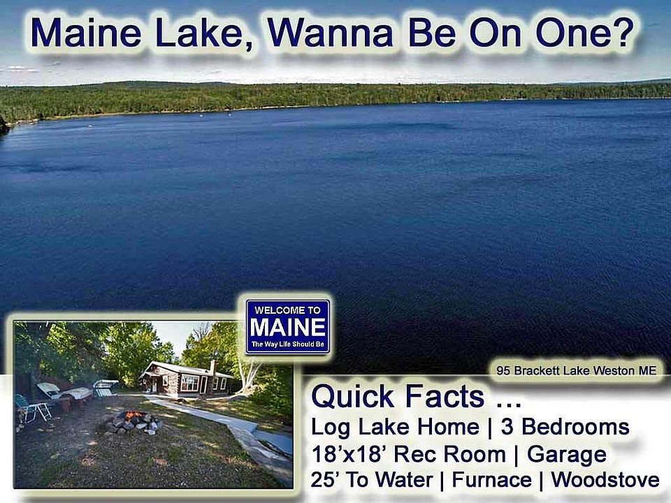 Log Home On A Maine Lake. It Does Not Get Any Better Than That! Waterfront Property, 3 Bedrooms, Extra 18'x18' Rec Room With Pool Table! New Appliances, Laminate Floor, New Windows! Less Than 25' From Brackett Lake! Swim, Boat, Fish, Hunt, Ride The Trails! Ideal Location, Maine Lake Log Home! Video. The Main Log Home Is Oil Hot Air Furnace Heated Or Use Wood Stove On Bricked Hearth! Concrete Walk Ways, Steps Into Safe Swimming! Gravel Bottom, Clean Fish Filled Lake! Garage For Your Toys Has Cement Floor, Roll Up Door, Made Of Maine Logs Too! Neat Package, Level Lot, Right At Water's Edge! Looking For A Lake Property In Maine? Maybe Not Anymore! Questions? Reach Out, Here To Help! Be Parked Right On The Lake Water Shoreline! Cement Steps Retainer Wall To Safe Gravel Bottom Swimming.