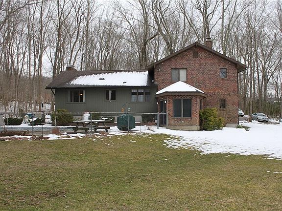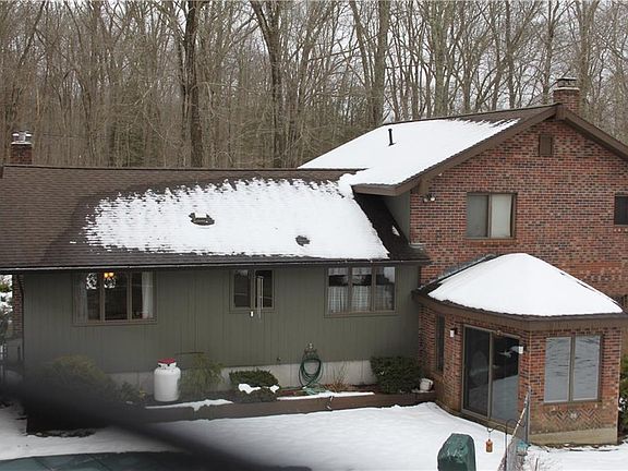 Country-quiet, Quality built one owner Contemporary Tri-level house is perfect for someone who loves lots of living spaces AND appreciates a PRIVATE tree-lined location for outdoor enjoyment. Located on almost 5 acres, this property PLUS the 40 x 60 barn is great for using as a home business or for use for taking care of horses or other small animals.Property has subdivision possibiity for future investment potential. Living space includes 3BRs, 2.5 BAs, a contemporary-style living room with vaulted ceiling, skylight & 2 story fireplace, formal living room with hardwood floors, Kitchen with breakfast bar, breakfast nook, den with fireplace, enclosed gazebo porch, first floor laundry & large finished family room in lower level, about 2800 sq. ft. of living spaces. In ground pool & patio for outdoor fun. Many recent updates, include added insulation, brand new pool liner. MOVE-IN-CONDITION. Retired owners say, "Help us Move, Bring us an offer."