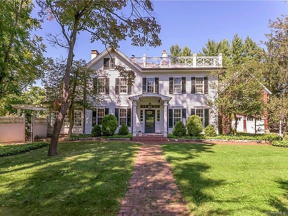 Discover Connecticut's #1 Town approximately 1 hour to NYC! This classic Georgian Colonial features many original details w/large formal spaces & intimate rooms making for a wonderful home retreat. Fully furnished in a unique bohemian style with multiple options for friends and family accommodations. Eat-In Gourmet Kitchen with high-end appliances & Butler's Pantry, spacious Living Room with Fireplace, multiple Sunrooms, distinguished Library, wonderful Master Suite with balcony, Jack & Jill or ensuite Bedrooms on 2nd floor. The 3rd floor walk-up attic can function as dormitory Bedroom or private Guest Quarters. The Bonus Room above the garage has easy access to a Full Bath or allows for a 2nd Family Room. Past the privacy fence you are surrounded by rolling lawns, beautiful gardens & an in-ground Pool plus Cabana. Great in-town location means yo can walk to everything Ridgefield offers including 5-Star Restaurants, Boutiques, Shopping, Spas, Gyms, Pilates Studios, Yoga Studios, Spin Studios, Hiking Trails, Indoor Ice Rink, fabulous Dog Park, Prospector Movie Theatre, Off Broadway ACT of Connecticut Theater, The Ridgefield Playhouse, The Aldrich Contemporary Art Museum & so much more!! Enjoy the nearby Town Golf Course & Lakes as well.