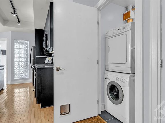 This spacious one bedroom plus den condo offers a contemporary, open-concept layout in a fantastic location. Built by Charlesfort, at 803 sq ft *as per builders plan, you will enjoy the full size kitchen, dining room, and private balcony. Featuring hardwood and cork flooring, granite counters, stainless appliances, and a large island with breakfast bar. The versatile den serves as an ideal home office or additional bedroom for guests. The bright, south facing windows provide an abundance of natural light throughout the space. Featuring in-suite laundry, cheater bathroom door to the bedroom for convenient access, underground parking, and storage locker included. Located steps from Lebreton Flats, the Ottawa River, Little Italy, and Downtown. A well-managed, quiet building, with exercise centre, party room, and visitor parking, this is the perfect spot to call home. Available today!