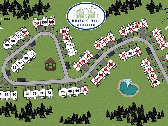 Welcome to Brook Hill. Meredith’s premier luxury townhomes. Nestled on a hill with beautiful mountain views, walking trails, water fountain and common green spaces. These sophisticated modern townhomes offer a highly desirable lifestyle in lovely Meredith, NH. Each elegant home showcases an open concept layout. Enter through the front door into the living room with soaring cathedral ceiling makes you feel right at home. Natural light accentuates the gorgeous red oak floor gleaming all the way down to the sunroom. The Ensuite first floor master bedroom is well designed with a large walk-in closet, dual vanity and tiled shower. As you enter the home through the one car garage you will step into the mudroom, laundry room and ½ bath. This is one floor living at its best! The kitchen/dining area is sleek with granite counters, high end cabinets, stainless steel appliances and a large center island. The kitchen flows into the bright sunroom with sliders out to the deck and nice views of the surrounding natural beauty. The oak staircase brings you up to the second floor with a large loft area overlooking the living room. The second floor also features an ensuite guest room with full bath, study and bonus room above the garage. There is also a full-sized basement with lots of storage. Phase l is sold out. Now selling phase ll. This is an end unit abutting the woods. Framed not completed. Many standard options and upgrades available. Public Open house every Saturday from 10-12