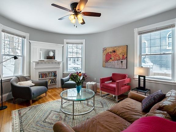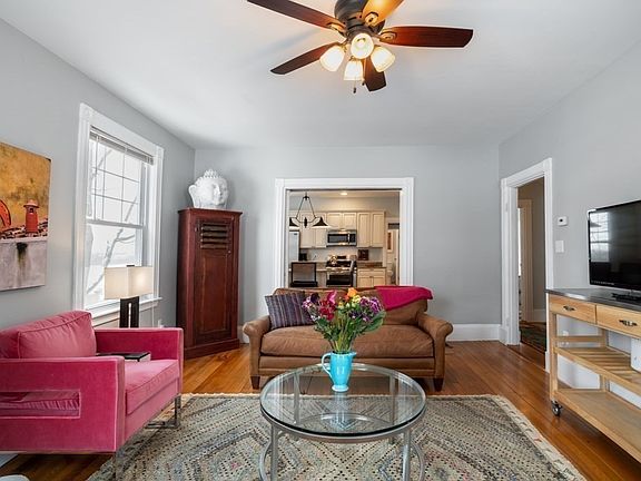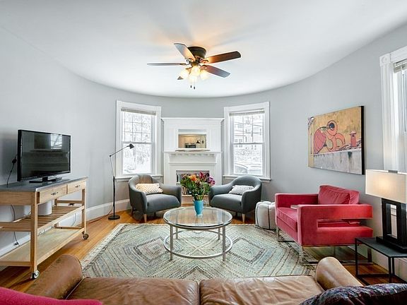 If you appreciate period detail with modern updates, this 2 bed 2 bath in Roslindale's Prospect Hill will surely win you over. On the first floor of a Victorian 2-family converted in '15, this classic condo has wood floors, high ceilings and must-have comforts such as central A/C, in-unit laundry & off-street parking. The bow front living room features a decorative mantle w/ built-in shelving, ready to display your favorite novels. Pocket doors open to the eat-in kitchen appointed with a massive granite island and plenty of cabinet storage. Primary bedroom at the rear has a wide closet, full ensuite bath and peaceful yard views. A large 2nd bedroom would serve well as a home office. Bonus closet off the foyer provides additional storage plus there's an exclusive basement room for your exercise or creative needs. A private side porch is the perfect daydreaming spot overlooking an impressively sized yard w/ garden beds. 1/2 mile to Roslindale Square, farmer's market, & commuter rail.