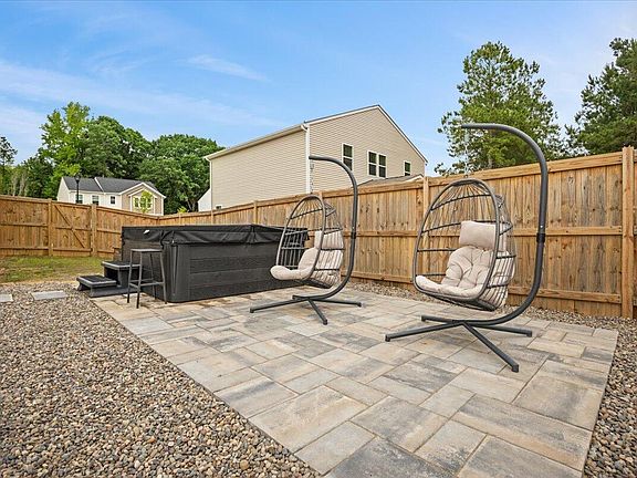 Step into this beautifully versatile 5-bedroom, 3.5-bath home, designed to meet the needs of modern living with dual primary suites on both the main and second floors—perfect for multi-generational families or those craving extra flexibility. Throughout the home, striking geometric feature walls create a contemporary and stylish atmosphere that truly sets this space apart. The downstairs primary suite impresses with soaring vaulted ceilings, flooding the room with natural light and enhancing the sense of spaciousness. Entertain like a pro in your private backyard oasis, featuring dual patios with elegant patio pavers, providing ample space for outdoor dining, lounging, and gatherings. Whether hosting summer barbecues or enjoying quiet evenings, this backyard is made for making memories. Inside, the updated laundry mud room combo offers smart cabinetry for organized living, and a high-quality refrigerator conveys with the home, adding everyday convenience. Thoughtfully designed and meticulously maintained, this home combines style, function, and comfort—all priced to sell and ready for you to move in and enjoy.