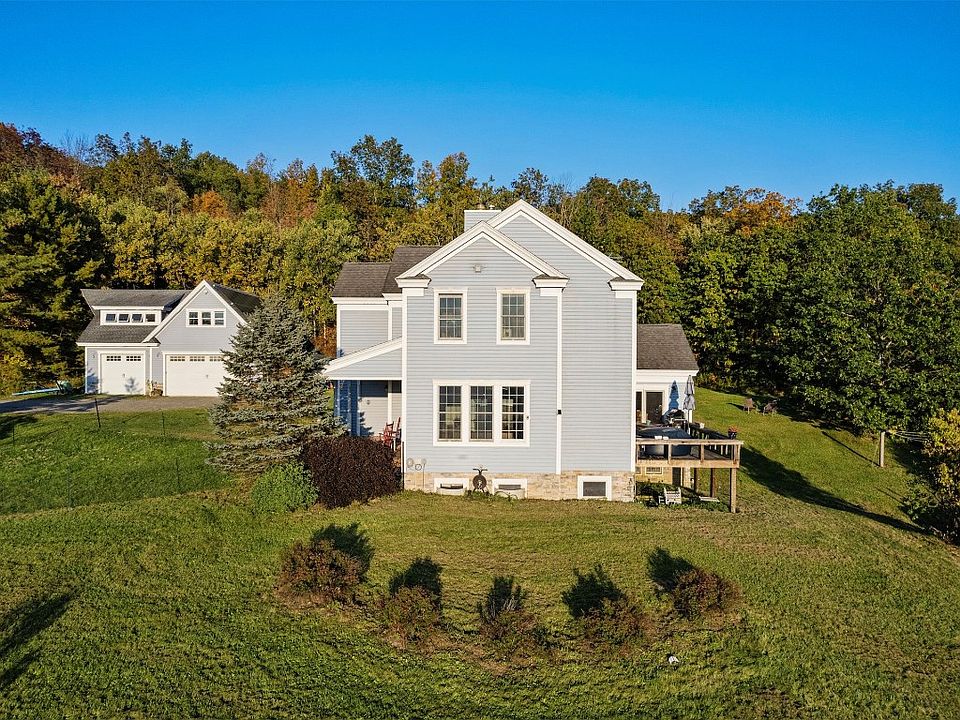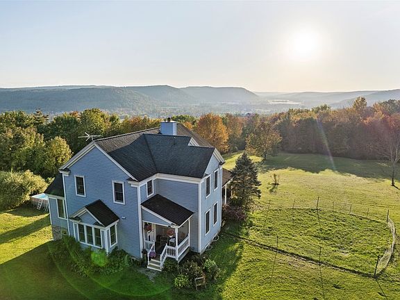 This stunning house is a perfect country setting retreat awhile enjoying the modern amenities of their home. A little slice of paradise situated on 25 private acres with panoramic distance views of the valley. A beautiful custom-built home with 4 generous bedrooms and 2 full baths on the second floor. The master bedroom has an ensuite and a walk-in cedar closet. A large office on the first floor could easily be converted to a fifth bedroom. It has a full eat-in chef’s kitchen, high ceilings, hard wood, ceramic on the main floor with large energy efficient windows providing beautiful light everywhere. The partially finished basement offers a full bathroom, office space, exercise room, home theater, as well as plumbing for a second kitchen. There is a new high efficiency boiler and radiant heat throughout. Solar panels provide electricity. A newly built 5-car garage with 2 story workshop/office. Only 30 mins. from Ithaca, Binghamton, Elmira and Sayre.