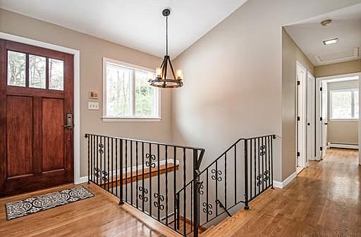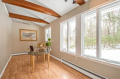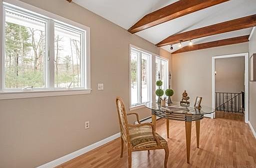 This is it! Gorgeous new stone walkway and front steps welcome you to this Updated Ranch featuring vaulted beamed ceilings throughout the oversize living room, kitchen & study. New & refinished hardwood floors throughout the entire 1st floor. Interior freshly painted. Large light-filled Cooks kitchen with plenty of counter space, center island flowing to eat in area. Two bedrooms, office, along with a recently remodeled full bath complete the 1st floor. Lower level boasts new flooring throughout, large family room with wall of windows, 3rd bedroom, studio space, updated full bath & laundry. Young efficient heating system along with newer siding and windows. Rear Deck looks over backyard providing sanctuary space that abuts acres of conservation land. A Reeds Barry Shed is on site for all the sports & lawn gear. Jack Walsh Field with tennis, soccer, basketball and playground is across the street. Easy access to shopping and Rt 2, 495 & 62. Terrific Westford Schools! Welcome Home!