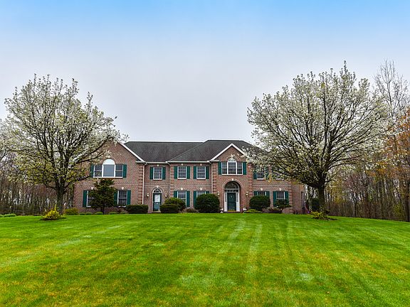 Fabulous Colonial with views! Situated at the end of a cul-de-sac, this well-built, home features a spacious chef's kitchen with island, breakfast nook and butler's kitchen for prep work; great room with gas fireplace and slider to the patio; formal dining room with crown moulding and recessed lighting; den/office with recessed lighting, crown moulding and French doors; hardwood flooring throughout the first floor; a full bath and separate entrance complete the main level. The upper level consists of the master bedroom suite with luxurious bath; walk-in closet and wall to wall carpeting; three en suite guest bedrooms with walk-in closets, full baths and wall to wall carpeting. The exterior grounds is comprised of beautiful gardens, plantings and is accented by stonewalls. Mechanical features include hydro air heat, central air conditioning, security system and lightning rods. Extremely well maintained, quality construction and move-in ready.