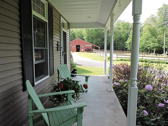 This equestrian property is a hidden gem, tucked back in the middle of 20 acres. Immaculate well built barn currently has 3 stalls w/ room for more. Stalls are 12x12, matted & walk out into private paddocks. Great overhang area protects horses from inclimate weather & bugs. Frost free hydrant, tacking area and feed room area with large center aisle. Safe well fenced large private paddocks and large fenced field for grazing. Tucked away outdoor riding ring and trails covers all your riding needs! Home is equally immaculate with dining areas that look out over pasture. Kitchen has granite counters and SS appliances with laundry right off back breezeway. Master has large private bath and walk in closet. Bonus room upstairs is great extra space for additional family room or guest bedroom. Your farm truck will fit in the attached oversized garage! Backup generator, Buderus boiler and back up wood burning furnace just some of the special features this home has to offer!