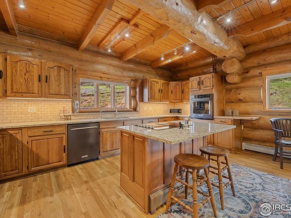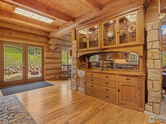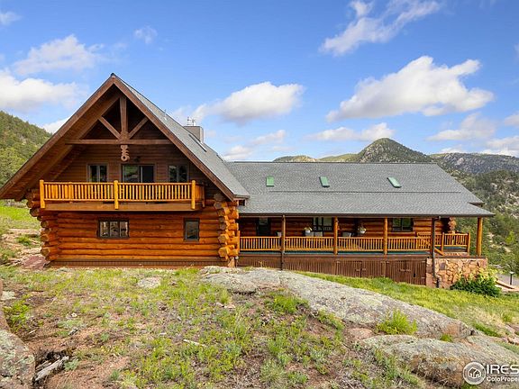 An extraordinary mountain retreat bordering Roosevelt National Forest, 95 Choctaw offers a rare blend of privacy, craftsmanship, and refined comfort on 11 pristine acres. This authentic log residence is thoughtfully positioned to capture the serenity of its natural surroundings while delivering a level of quality and detail discerning buyers expect.Inside, the home balances rustic elegance with modern upgrades. The great room is anchored by a dramatic floor-to-ceiling wood-burning fireplace, highlighted by a custom hand-painted mural of Bear Lake and Longs Peak-a striking focal point that reflects the beauty just beyond the walls. The home features three bedrooms and three bathrooms, including a tranquil primary suite complete with a spacious steam shower designed for spa-like relaxation.An upper-level loft offers a refined sitting area with a gas fireplace, an 84" television, and access to a private balcony overlooking the forested landscape. The lower level provides a versatile bonus space ideal for a private gym, wine cellar, studio, or artisan workspace-allowing the home to adapt seamlessly to your lifestyle.Outdoor living is equally compelling, with a covered front porch, a serene rear patio, a man-made pond, and a designated campsite perfect for entertaining under Colorado's night skies. Direct access to National Forest trails ensures immediate connection to hiking, exploration, and quiet moments in nature.Located just 15 minutes from Lyons and 20 minutes from Estes Park, this exceptional property offers you a personal sanctuary, with city conveniences nearby and proximity to Rocky Mountain National Park adding to its appeal. 95 Choctaw Road is a refined mountain estate-designed for those seeking authenticity, privacy, and elevated Colorado living.