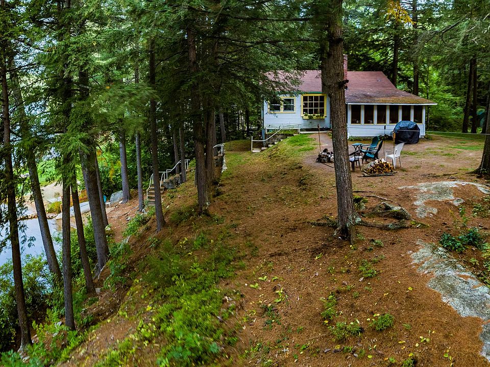 Meredith, NH 03253 - 162 feet of Winnisquam waterfront to enjoy at this wonderful 3 bedroom, 1 bath cottage with privacy and room to move, in a quiet, tree lined lakefront setting. Relax by your fire pit and take in the sounds and sites of waterfront enjoyment with forested views across the lake. This peaceful property offers a sandy beach, boat dock, and a wonderful four season 1950's cottage in a no wake zone. Inside there is rich wood paneling and flooring, plenty of windows for enjoyment of the views, and a large three season porch for warm weather living. Wake up to the call of the loons every morning. Just 4 homes share access on this private road. Showings will begin on Saturday, 9/18/21.