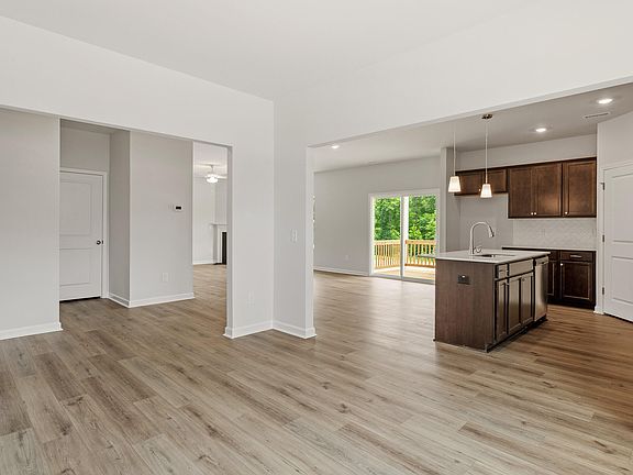 Large Home Site Perfect Backing to Wooded Buffer! Main Level Guest Bedroom! ''Wild Dunes'' Luxury Vinyl Plank Flooring on Entire 1st Floor! Large Kitchen: features Island, Custom Cabinets w/Soft Close, ''Lagoon'' Quartz Countertops, Tile Backsplash, SS Appliances, Pendant Lights & Corner Pantry! Separate Dining Room! Spacious Primary Suite: Trey Ceiling w/Crown & Huge Walk in Closet! Primary Bath: 5' Shower, Tile Flooring, Custom Cabinets, Double Vanity w/Quartz Top & Linen Closet! Generously Sized Secondary Bedrooms! Open Bonus Area Provides a Versatile Living Space Upstairs! Great Room: Open Concept w/Ample Natural Light, Gas Fireplace & Access to Rear Covered Porch Overlooking an Enormous Backyard!