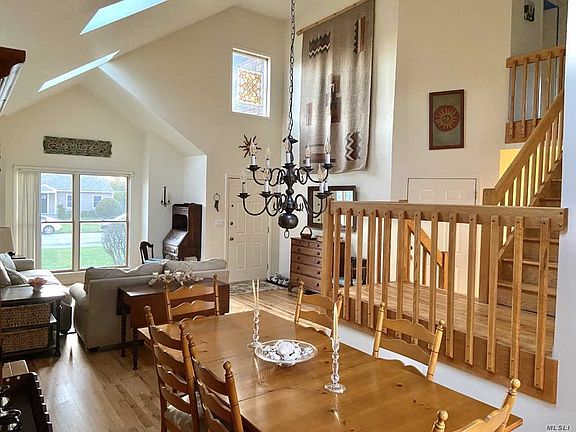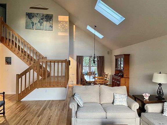 Just down the road from the Bellport Country Club and conveniently close to the Village with Village rights. Enjoy Village Golf Rates, Mothers Beach and Ho Hum Beach all within a short distance. This 2600sf cedar contemporary is fully fenced and larger than it looks with a 2 car garage and full basement with outside access. Home features a great floor plan, skylights, wood floors, fireplace, CAC, Irrigation system, Hot Tub (on the back deck) and SOLAR PANELS.