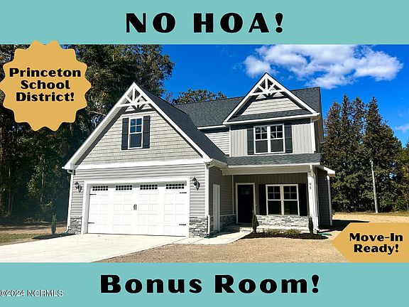 ASK ABOUT LARGE BUILDER CREDITS TO GET BUYER CLOSING COST PAID!! MOVE-IN READY!! Welcome to a Beautiful New Construction Home in ESTABLISHED Edgebrook Community with NO HOA! This two story home offers over 1,700 sqft with 3 beds, 2.5 Baths and a Bonus Room and 2 CAR GARAGE and TONS of Natural Lighting with many Beautiful Windows Bringing in the Sun-Light! Cozy Fireplace in Living Room opens up to the Dining Area, flowing into the Granite Kitchen with Breakfast Bar and Lots of Counter Space w/ Large Pantry. You'll find convenience in the Custom Drop Zone Area and Half Bath Downstairs! The Two Car Garage is a great way to stay out of the weather! Upstairs You'll Find a Lush Owner's Suite with Double Granite Vanities, Large Walk-in Closet and Linen Closet. The Two Guest Bedrooms upstairs are a Great size and have a Guest Bath to accommodate. There's also a separate laundry room and Large BONUS Room! You'll be able to entertain on your Covered Front and Rear Porches over Looking Large Flat Back Yard!! ! This Home is a MUST SEE! GREAT LOCATION just off Highway 70 making an Easy Commute to RALEIGH or Goldsboro and Shopping Downtown Princeton less than 5 minutes away!! PRINCETON SCHOOLS!! Call Us Today to Schedule Your Private Tour of this Gorgeous Home today!